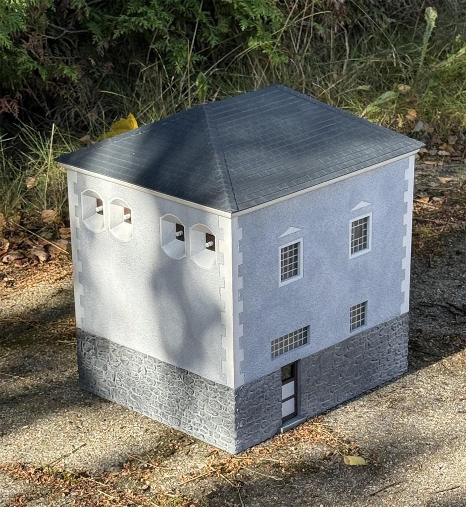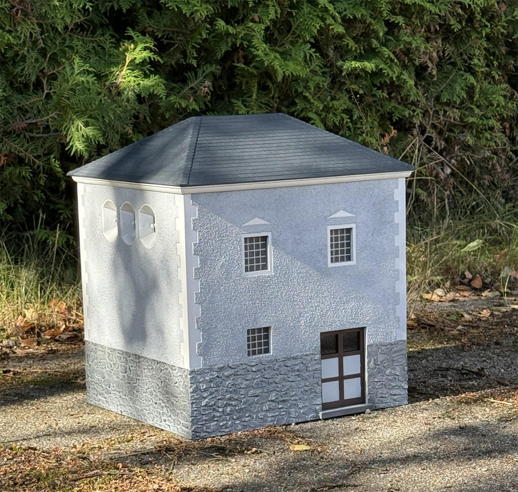 Passend zum bereits lieferbaren Stationsgebäudemodell Filisur bieten wir das Schalthaus, welches sich zwischen den Ausfahrten nach Tiefencastel und Davos befindet, an. Dieses Modell wird von uns im exaktem Maßstab 1:22,5 nach Originalfotos und Maßen vom Original in hochwertigem Resin gegossen und aufwendig farblich behandelt angeboten. Dabei sind die Details wie das Schieferdach, das Bruchsteinmauerwerk und die Fassadenoberfläche, Glausbausteinfenster sowie die typischen Hochspannungsisolatoren liebevoll nachgestaltet.